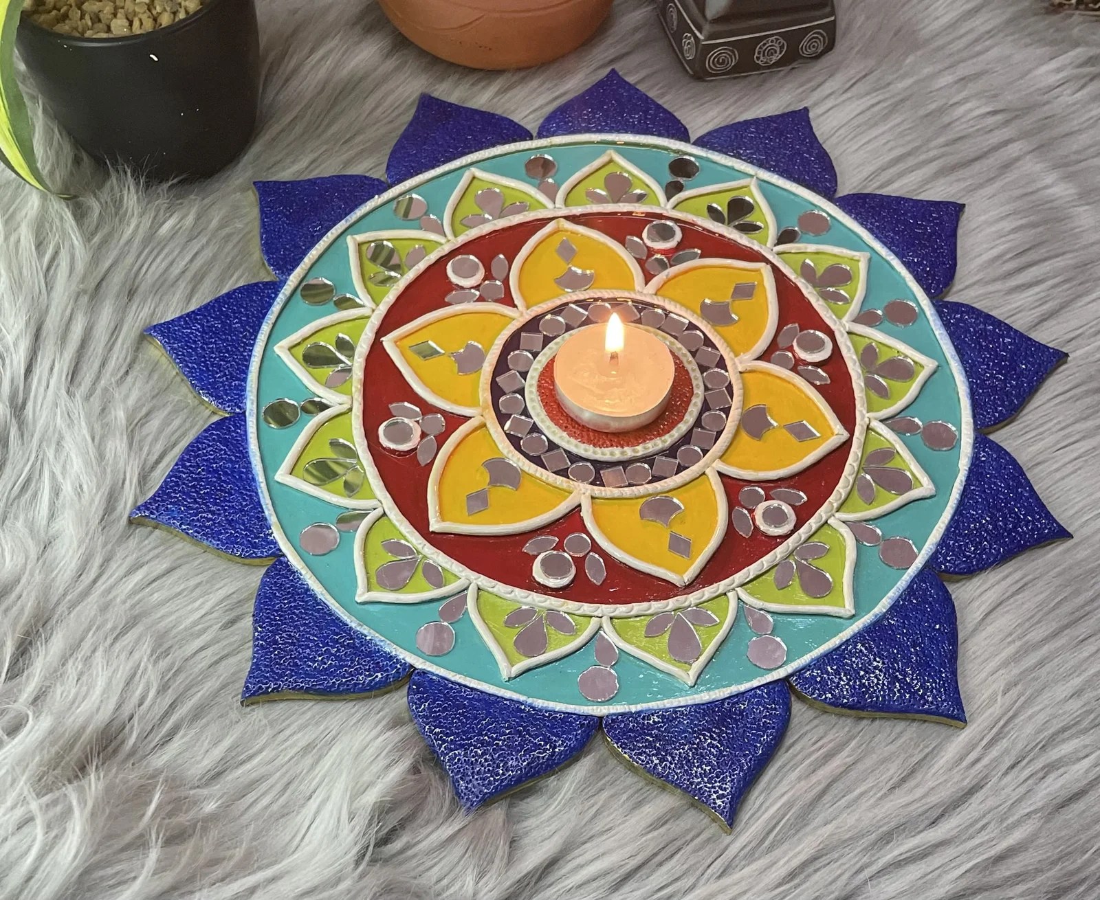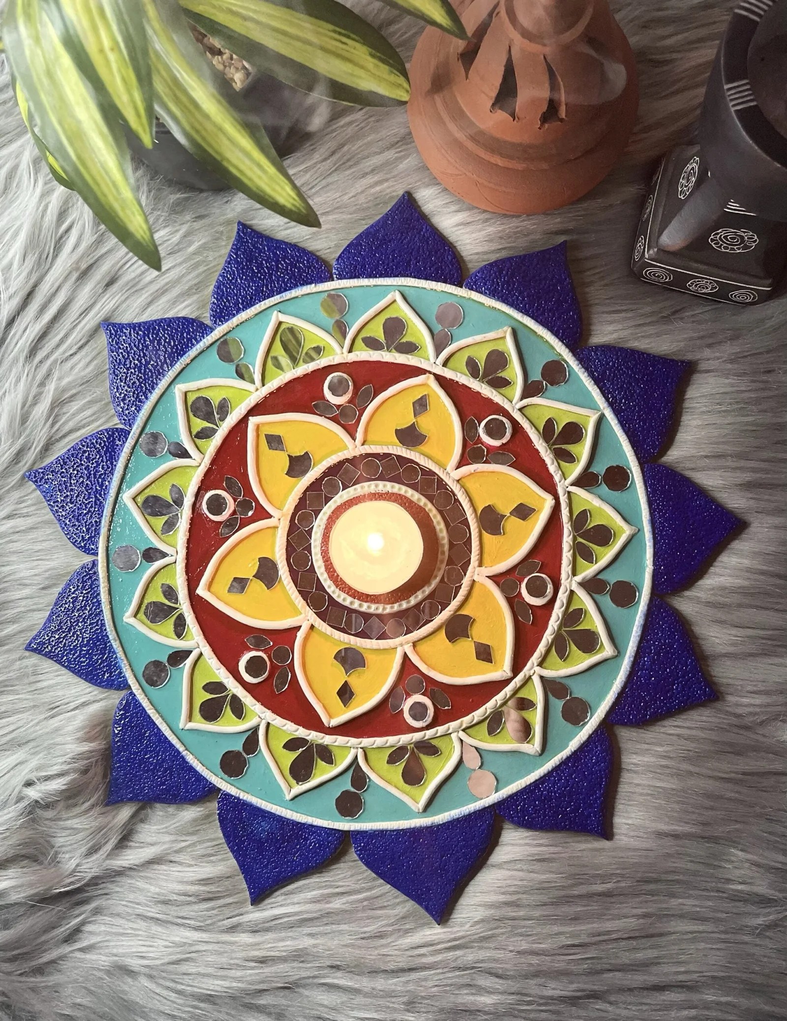 Clay and Mirror Lippan Art – Floral Board