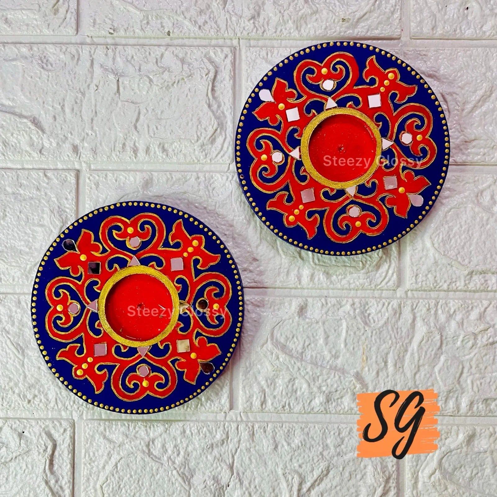 Colorful candle holders, Tea light holders set, MDF decorative holders, Vibrant home decor, Handmade candle holders, Unique gift ideas, Acrylic painted candle holders, Artistic home accents, Steezy Glossy, Customized candle holders, Festive decor, Dussehra, Diwali, New Year, Christmas